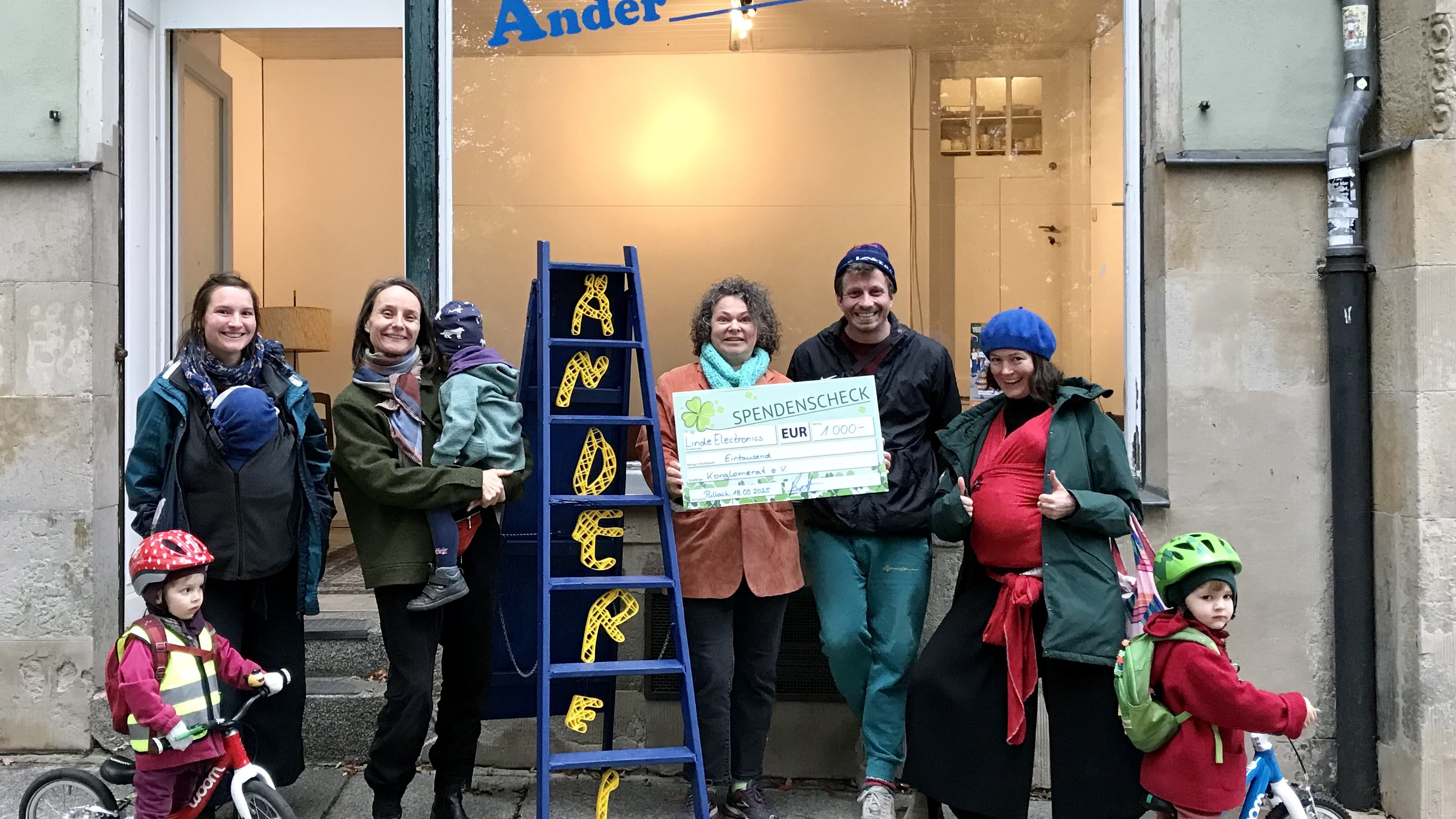 Linde Electronic is supporting our association with a generous donation of €1,000. With this donation, work areas such as the Zündstoffe material procurement department can now go shopping for fat boxes to give young and old better access to all rescued materials. The Änderei is treating itself to some fine exhibition lighting to give visual art the right amount of sparkle in the heart of Löbtau, and the refurbishment of our RON (Raum ohne Namen - room without a name) will allow us to buy finishing materials.